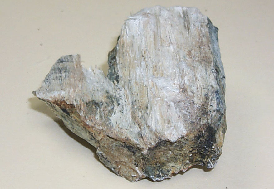 Tremolite-asbestos specimen from California. Tremolite is a hydrous calcium magnesium silicate that can occur in a variety of crystal shapes and sometimes occurs as asbestiform fibers.
