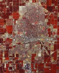 Between 1998 and 2002, FMMP transitioned the mapping process to a 'heads-up digitizing' workflow in which all data sources (digital photography, soil lines, field notations, reference maps) are co-registered and digitizing is done on screen. Examples of a color infrared air photo and resulting map, in the Hanford area, are below. These changes, along with today's many internet resources, improved the spatial and classification accuracy of the Important Farmland Maps.